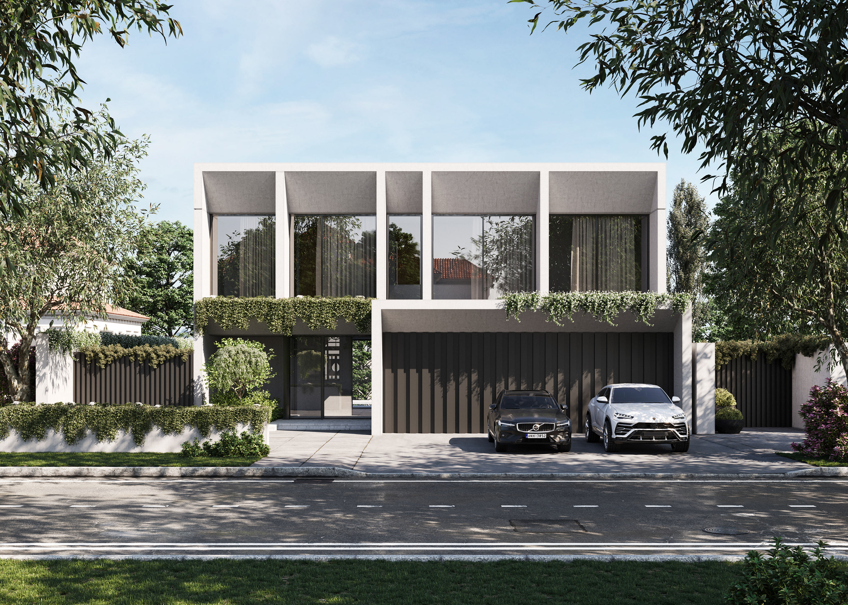 Eco-conscious design with living walls, solar integration and rainwater harvesting.